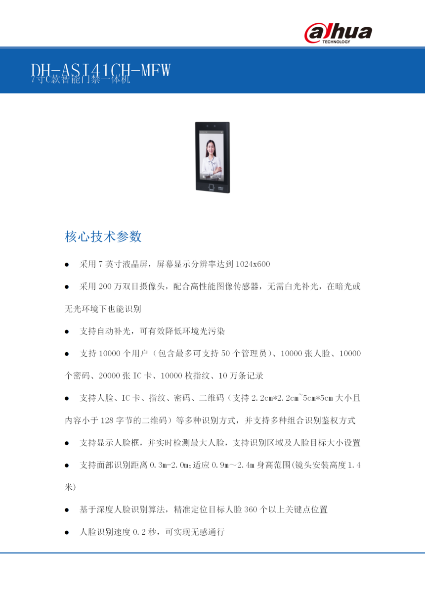 DH-ASI41CH-MFW智能门禁一体机